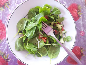 - Scoop out avocado and gently chop it into small pieces and place on top of the salad.